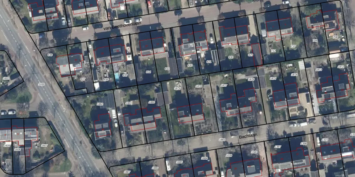Gebruik de zoekbalk of klik op een perceel om informatie over het perceel te bekijken.