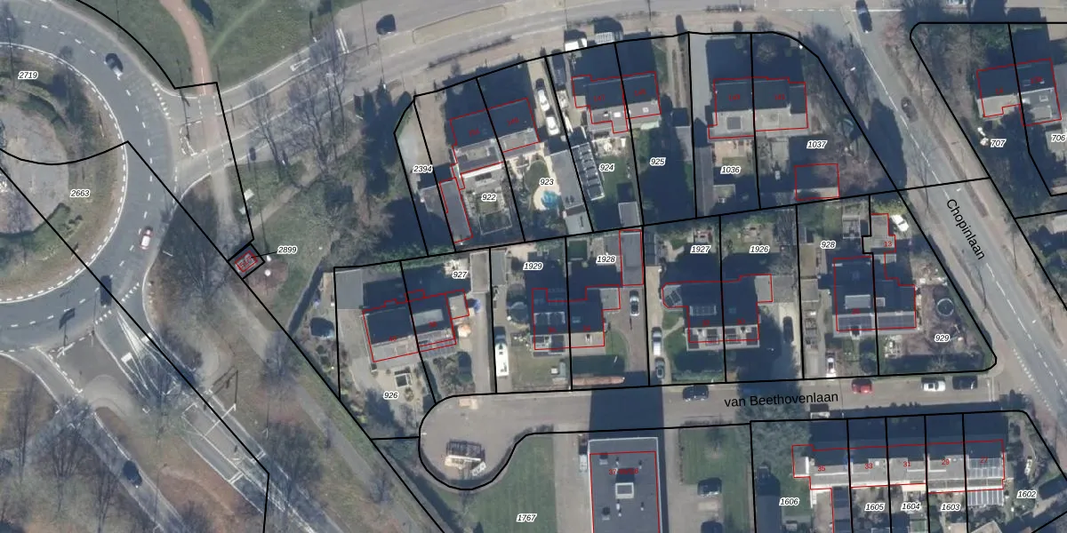 Gebruik de zoekbalk of klik op een perceel om informatie over het perceel te bekijken.