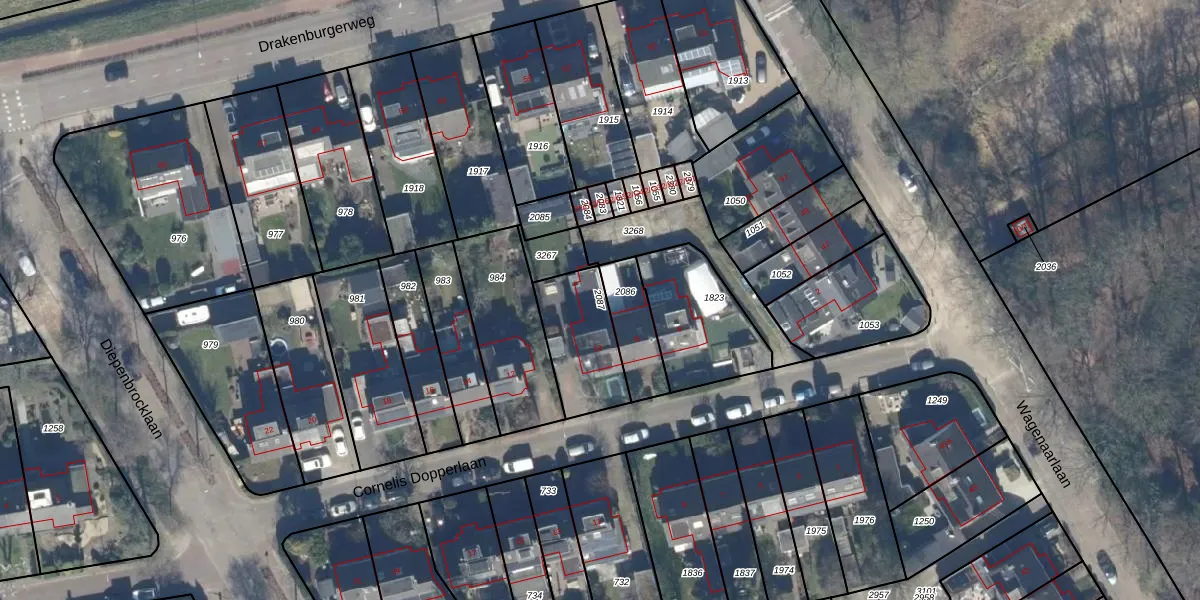 Gebruik de zoekbalk of klik op een perceel om informatie over het perceel te bekijken.