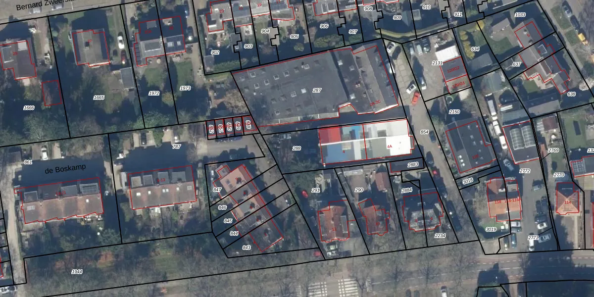 Gebruik de zoekbalk of klik op een perceel om informatie over het perceel te bekijken.