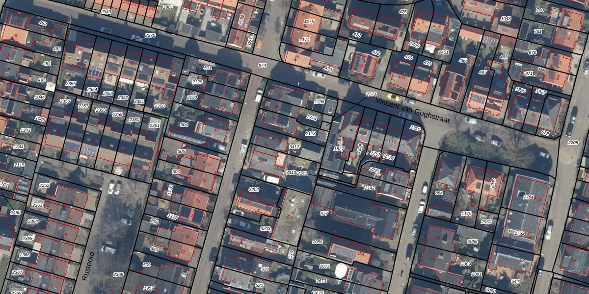 Gebruik de zoekbalk of klik op een perceel om informatie over het perceel te bekijken.