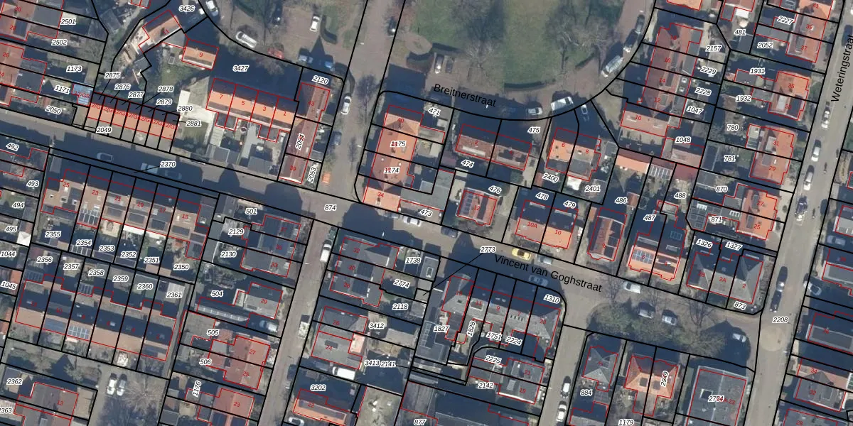 Gebruik de zoekbalk of klik op een perceel om informatie over het perceel te bekijken.