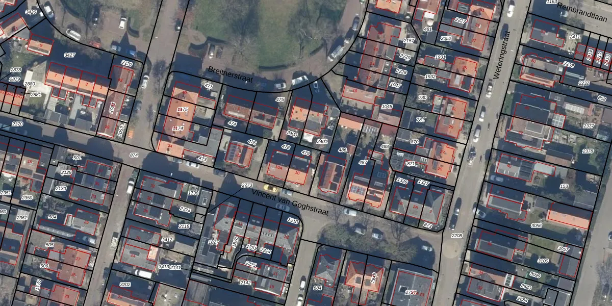 Gebruik de zoekbalk of klik op een perceel om informatie over het perceel te bekijken.