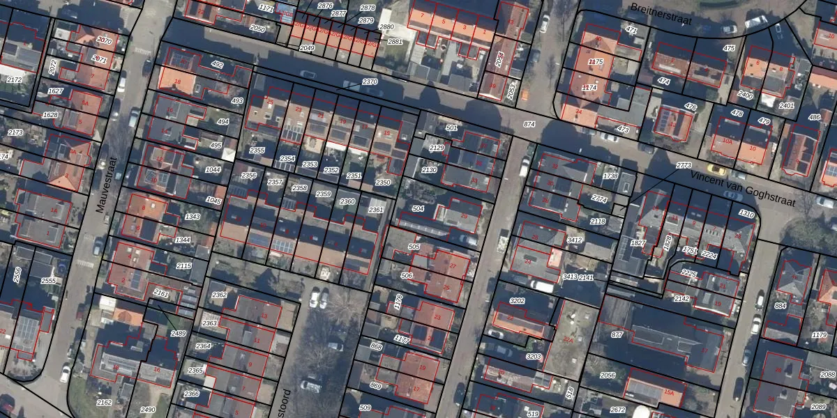 Gebruik de zoekbalk of klik op een perceel om informatie over het perceel te bekijken.