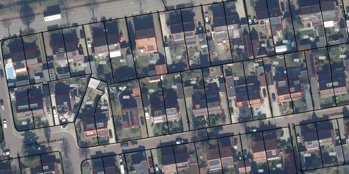 Gebruik de zoekbalk of klik op een perceel om informatie over het perceel te bekijken.
