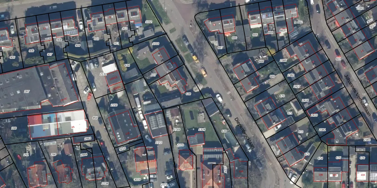 Gebruik de zoekbalk of klik op een perceel om informatie over het perceel te bekijken.