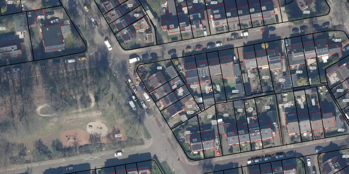 Gebruik de zoekbalk of klik op een perceel om informatie over het perceel te bekijken.
