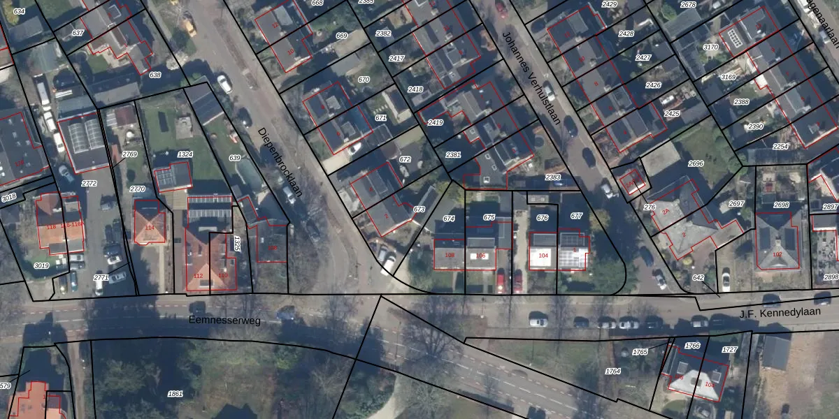 Gebruik de zoekbalk of klik op een perceel om informatie over het perceel te bekijken.