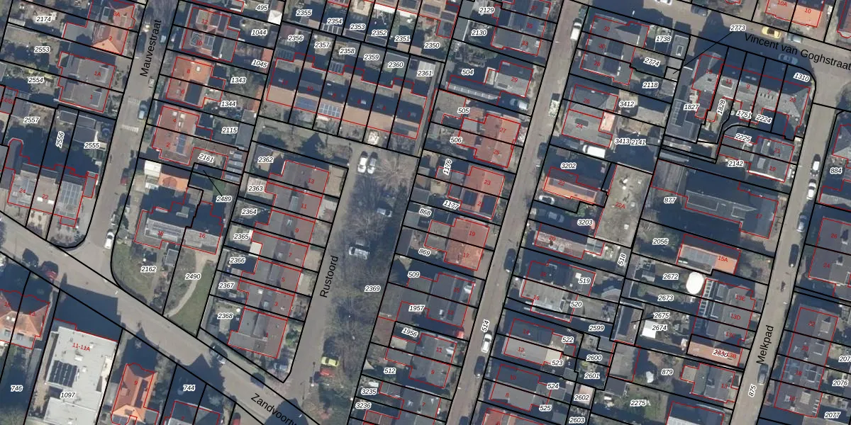 Gebruik de zoekbalk of klik op een perceel om informatie over het perceel te bekijken.