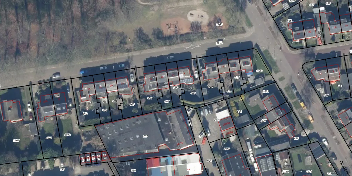 Gebruik de zoekbalk of klik op een perceel om informatie over het perceel te bekijken.