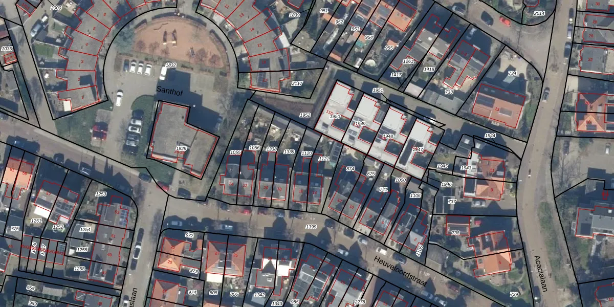 Gebruik de zoekbalk of klik op een perceel om informatie over het perceel te bekijken.