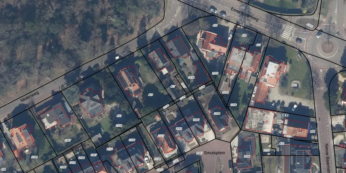 Gebruik de zoekbalk of klik op een perceel om informatie over het perceel te bekijken.