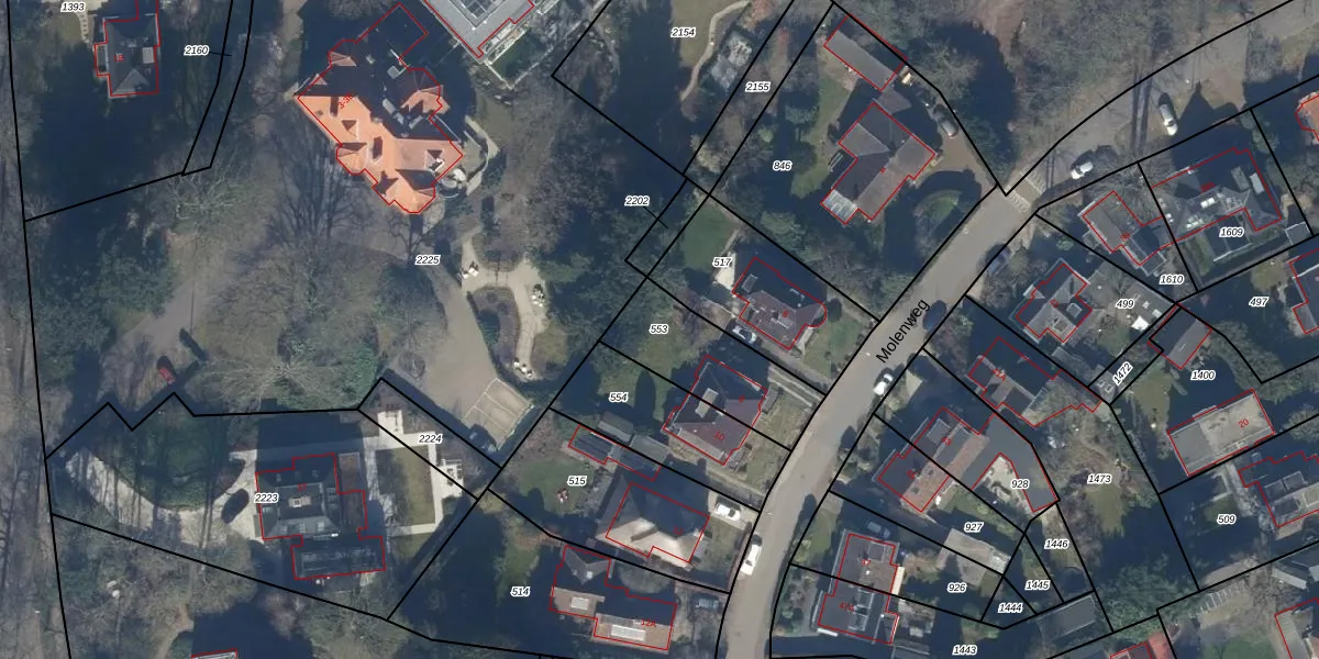 Gebruik de zoekbalk of klik op een perceel om informatie over het perceel te bekijken.