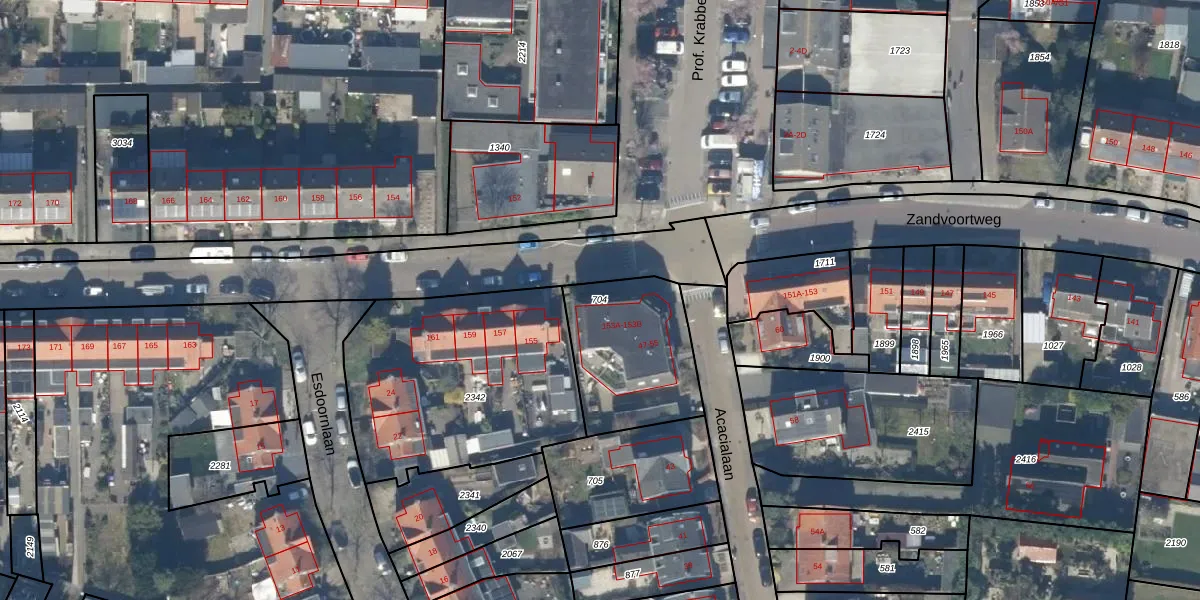 Gebruik de zoekbalk of klik op een perceel om informatie over het perceel te bekijken.
