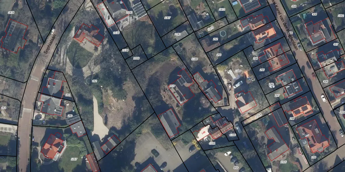 Gebruik de zoekbalk of klik op een perceel om informatie over het perceel te bekijken.