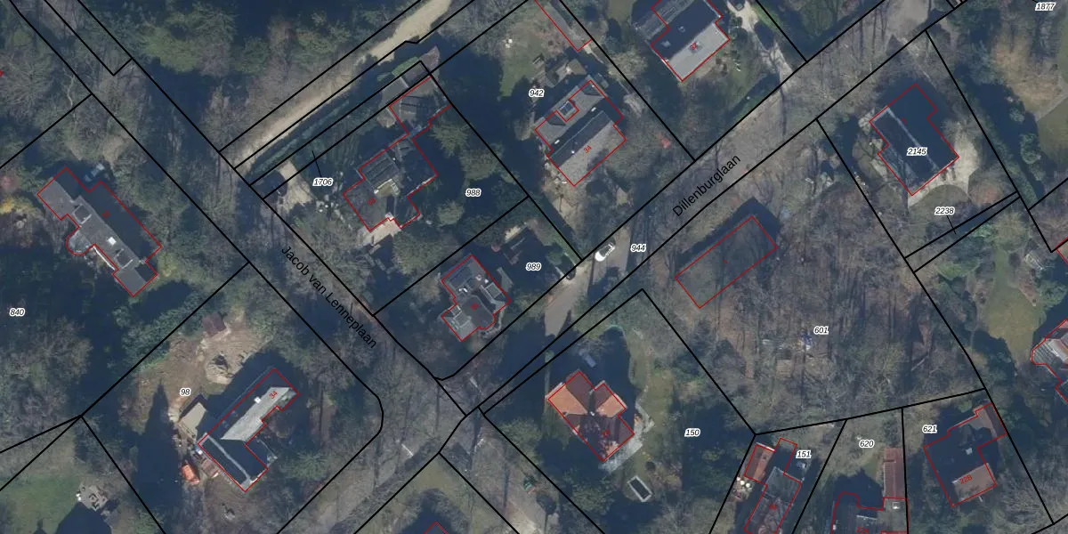 Gebruik de zoekbalk of klik op een perceel om informatie over het perceel te bekijken.