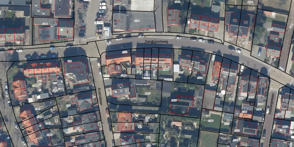Gebruik de zoekbalk of klik op een perceel om informatie over het perceel te bekijken.