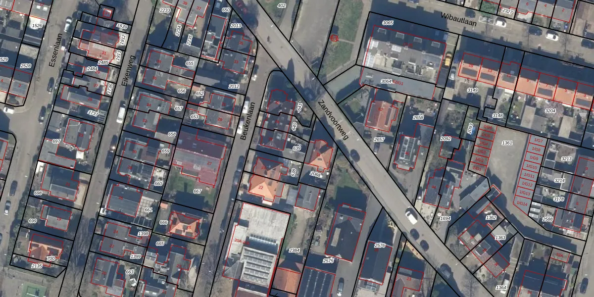 Gebruik de zoekbalk of klik op een perceel om informatie over het perceel te bekijken.