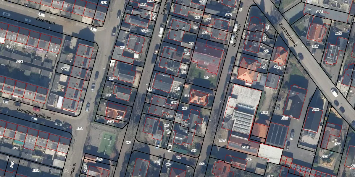 Gebruik de zoekbalk of klik op een perceel om informatie over het perceel te bekijken.