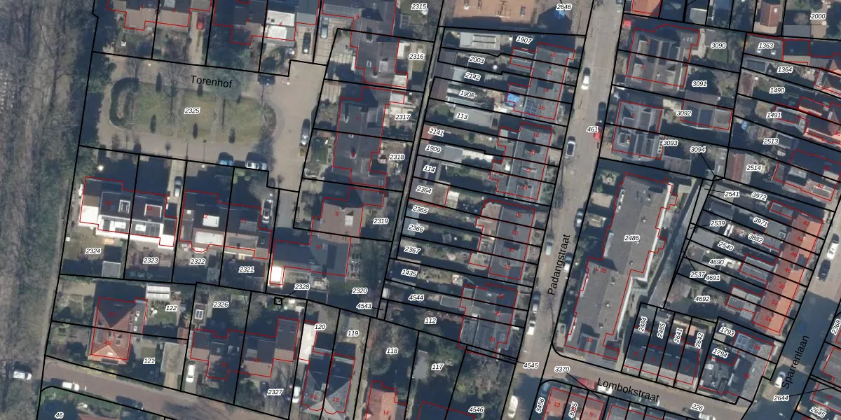 Gebruik de zoekbalk of klik op een perceel om informatie over het perceel te bekijken.