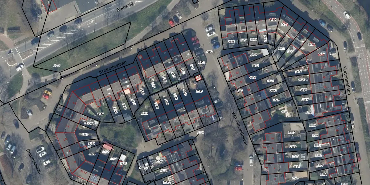 Gebruik de zoekbalk of klik op een perceel om informatie over het perceel te bekijken.