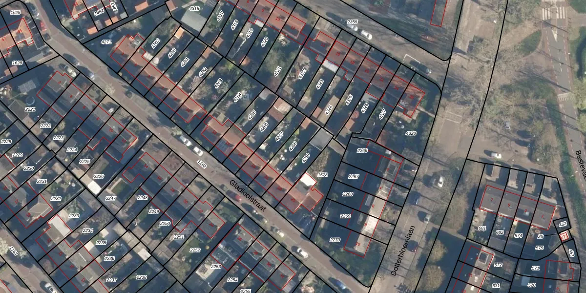 Gebruik de zoekbalk of klik op een perceel om informatie over het perceel te bekijken.