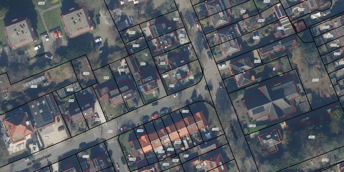 Gebruik de zoekbalk of klik op een perceel om informatie over het perceel te bekijken.