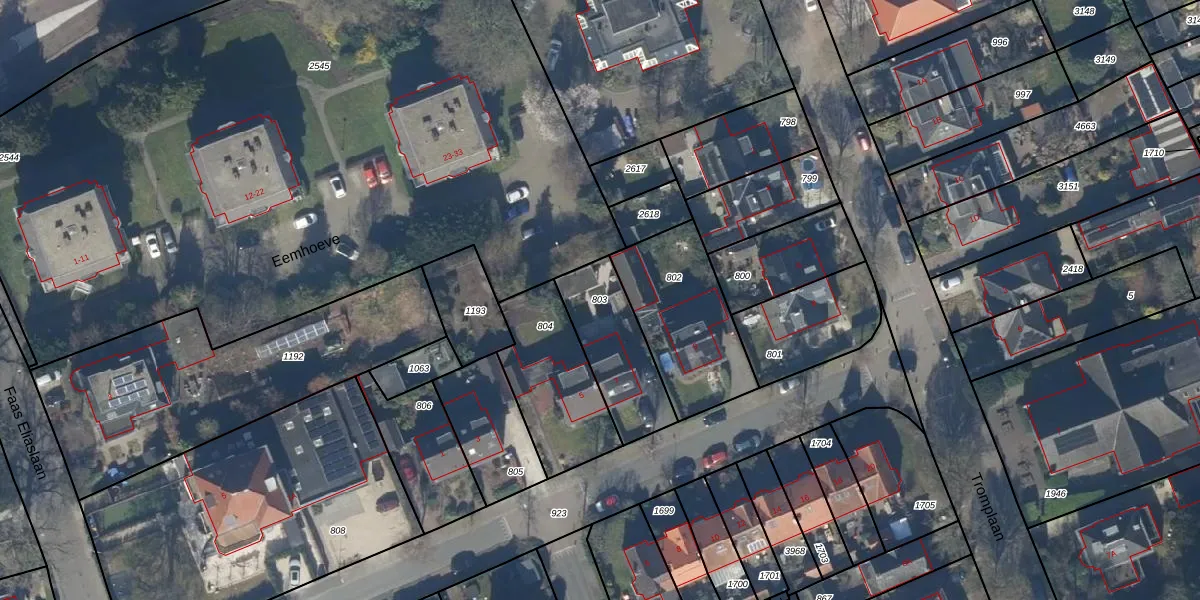 Gebruik de zoekbalk of klik op een perceel om informatie over het perceel te bekijken.