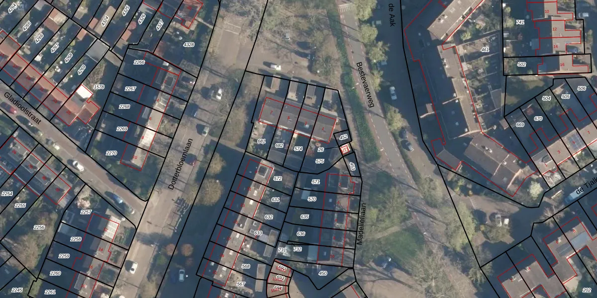 Gebruik de zoekbalk of klik op een perceel om informatie over het perceel te bekijken.