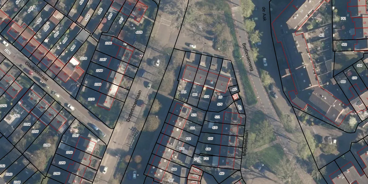 Gebruik de zoekbalk of klik op een perceel om informatie over het perceel te bekijken.