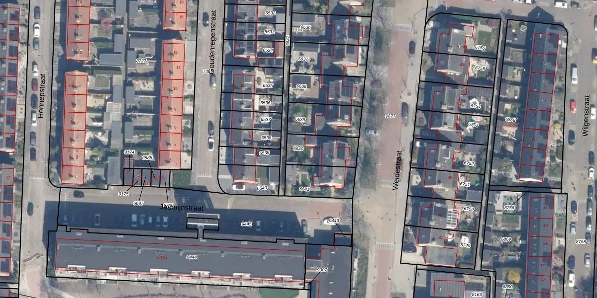 Gebruik de zoekbalk of klik op een perceel om informatie over het perceel te bekijken.