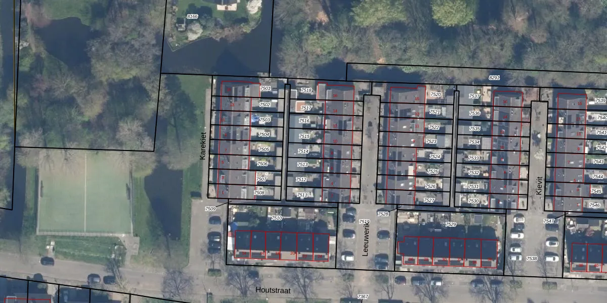 Gebruik de zoekbalk of klik op een perceel om informatie over het perceel te bekijken.