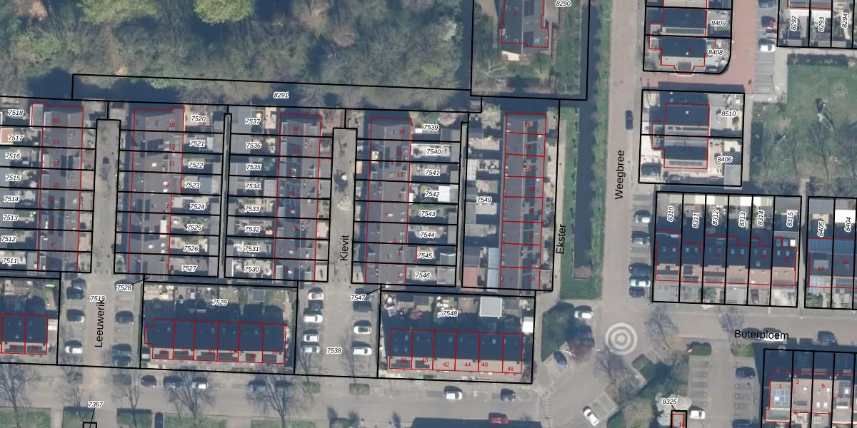 Gebruik de zoekbalk of klik op een perceel om informatie over het perceel te bekijken.