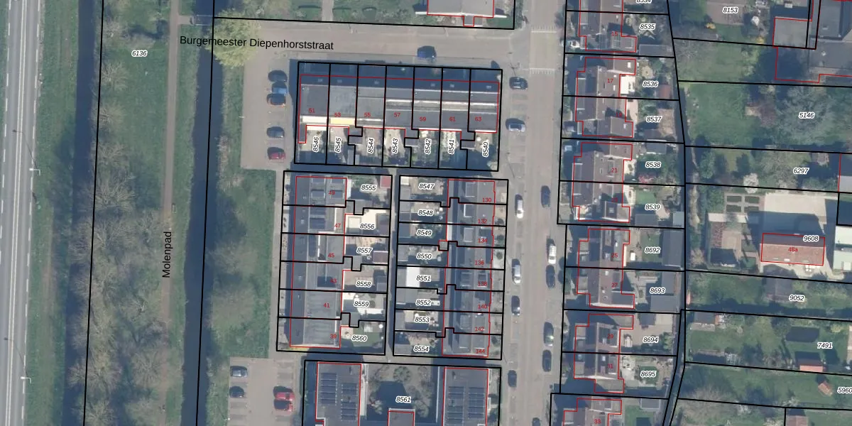 Gebruik de zoekbalk of klik op een perceel om informatie over het perceel te bekijken.
