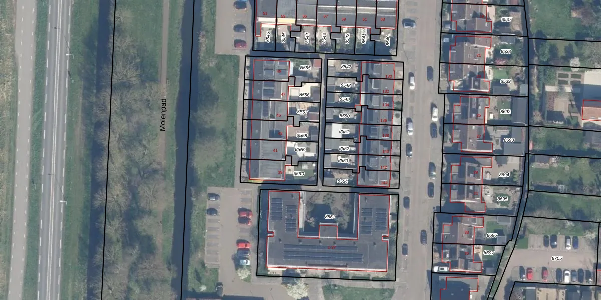 Gebruik de zoekbalk of klik op een perceel om informatie over het perceel te bekijken.