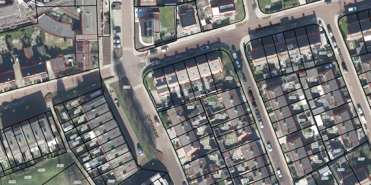 Gebruik de zoekbalk of klik op een perceel om informatie over het perceel te bekijken.