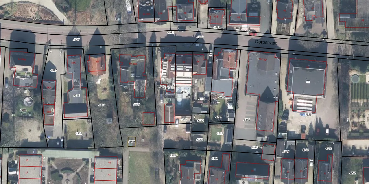 Gebruik de zoekbalk of klik op een perceel om informatie over het perceel te bekijken.