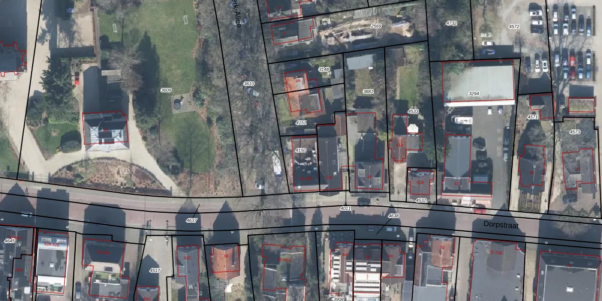 Gebruik de zoekbalk of klik op een perceel om informatie over het perceel te bekijken.