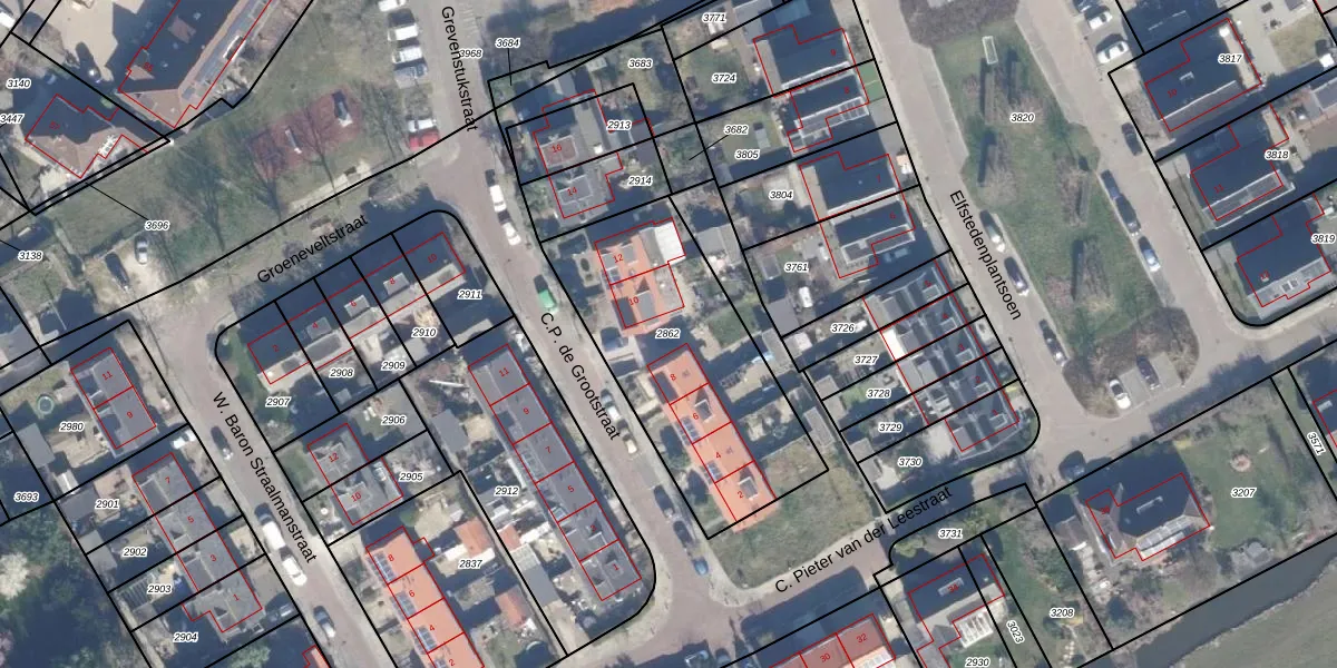 Gebruik de zoekbalk of klik op een perceel om informatie over het perceel te bekijken.