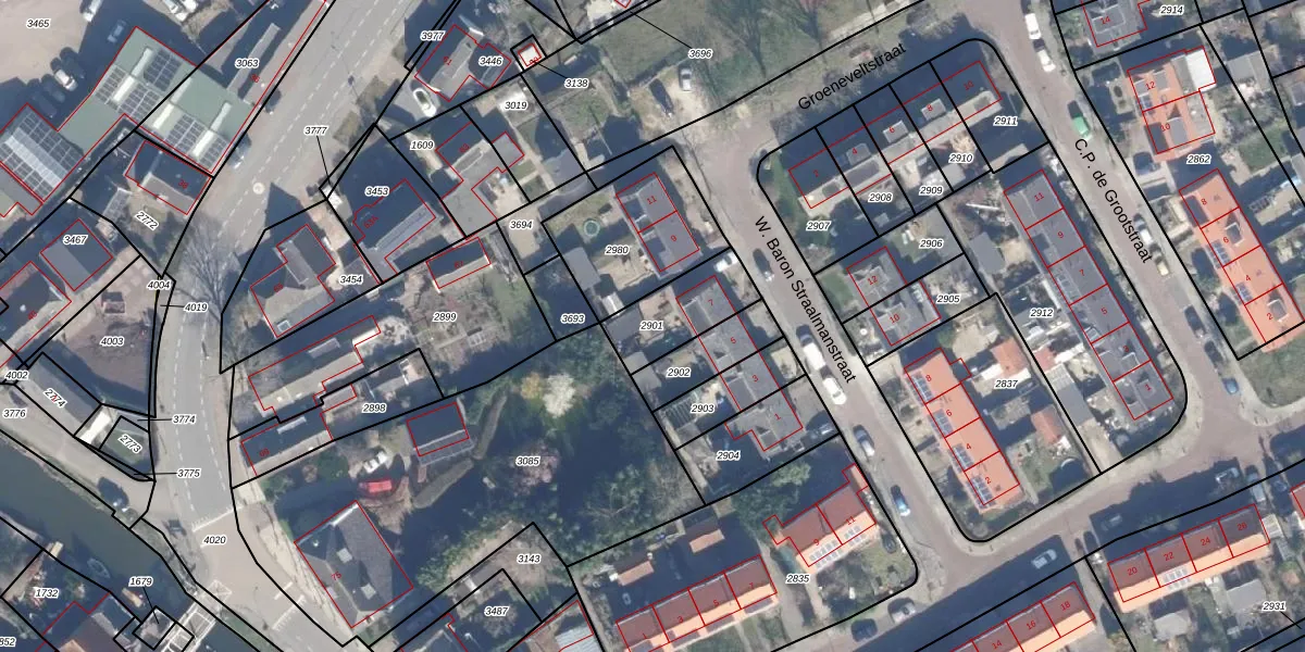 Gebruik de zoekbalk of klik op een perceel om informatie over het perceel te bekijken.
