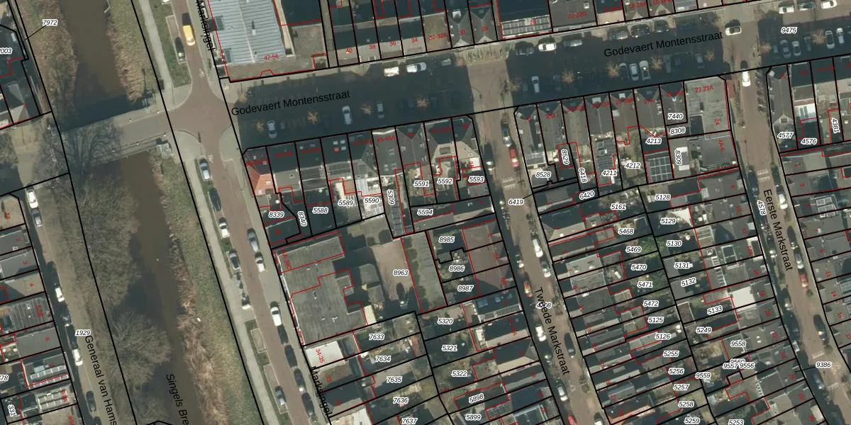 Gebruik de zoekbalk of klik op een perceel om informatie over het perceel te bekijken.