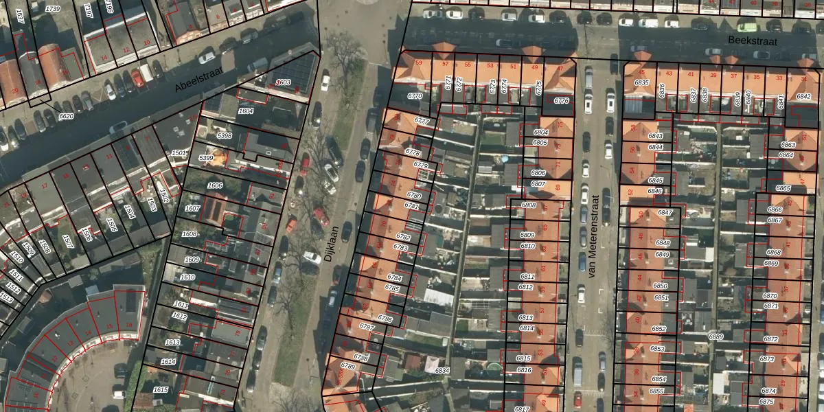 Gebruik de zoekbalk of klik op een perceel om informatie over het perceel te bekijken.