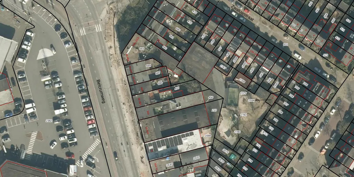 Gebruik de zoekbalk of klik op een perceel om informatie over het perceel te bekijken.
