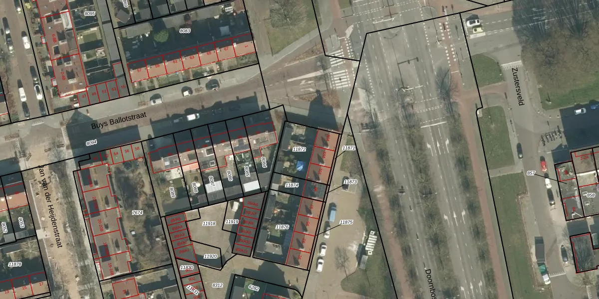 Gebruik de zoekbalk of klik op een perceel om informatie over het perceel te bekijken.