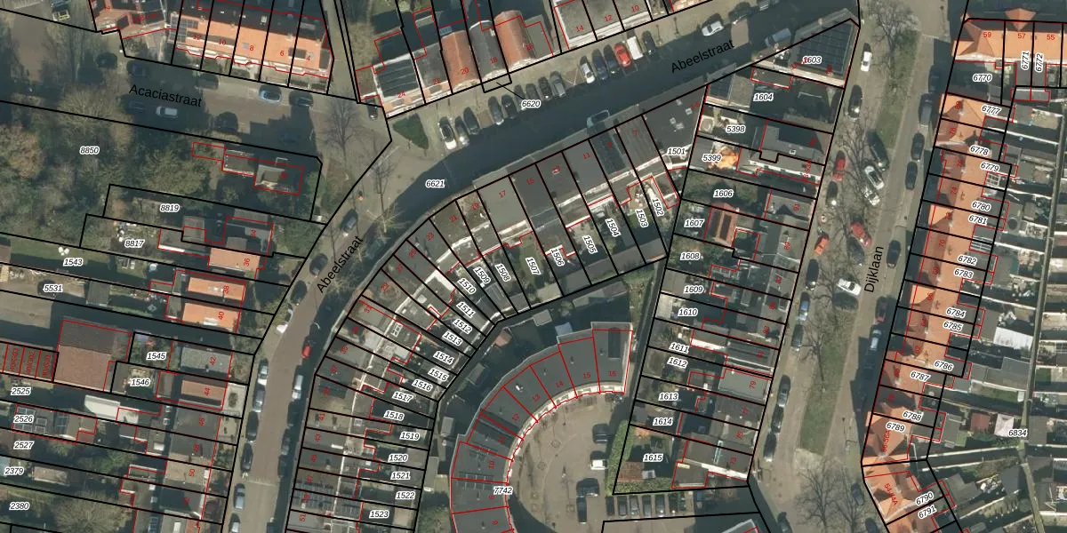 Gebruik de zoekbalk of klik op een perceel om informatie over het perceel te bekijken.