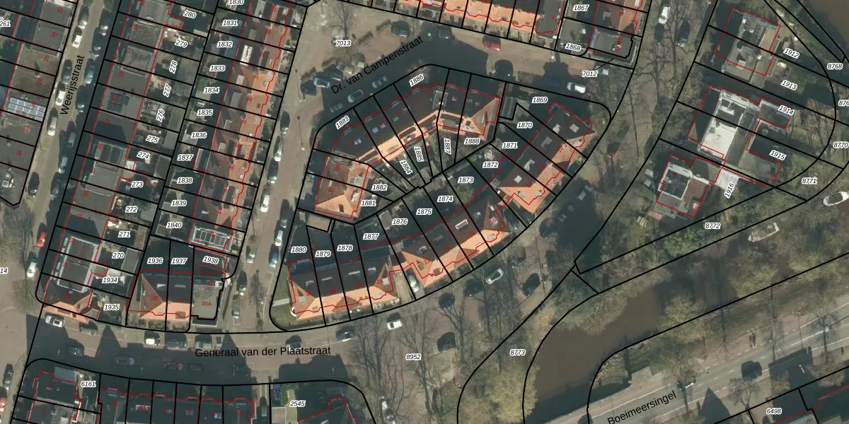 Gebruik de zoekbalk of klik op een perceel om informatie over het perceel te bekijken.