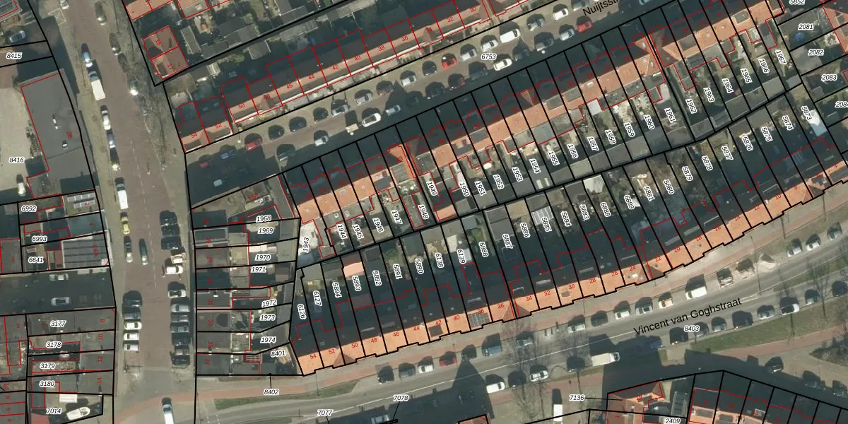 Gebruik de zoekbalk of klik op een perceel om informatie over het perceel te bekijken.