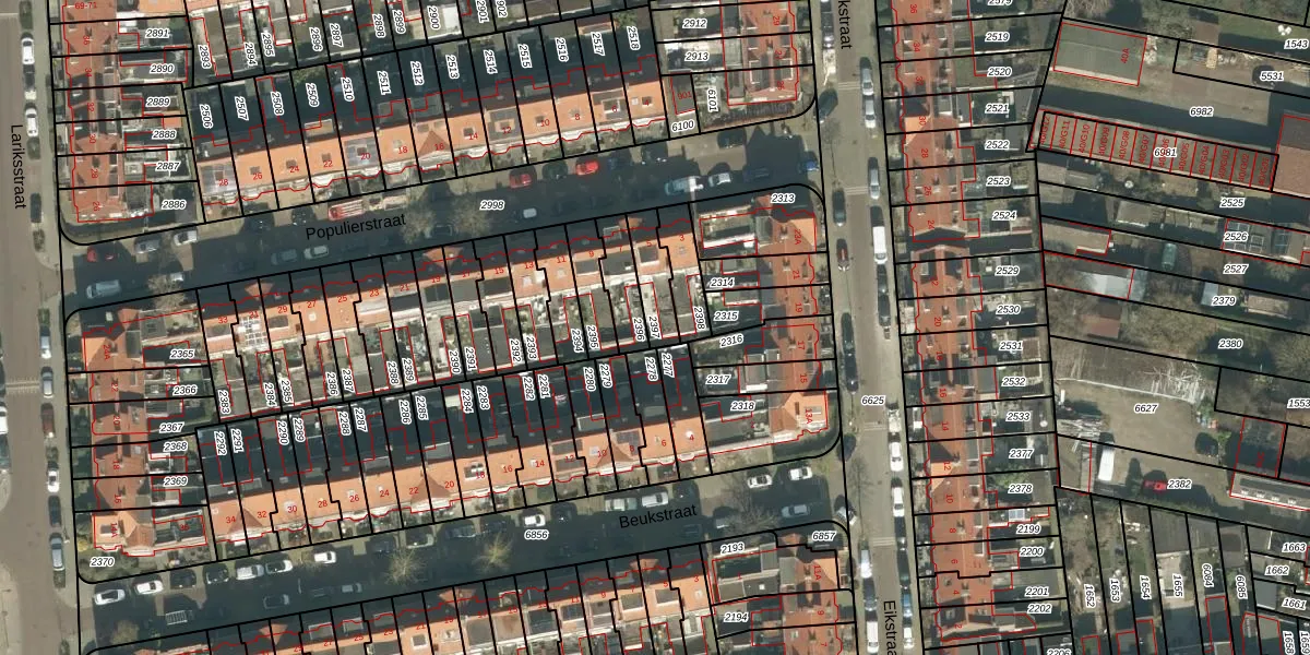 Gebruik de zoekbalk of klik op een perceel om informatie over het perceel te bekijken.