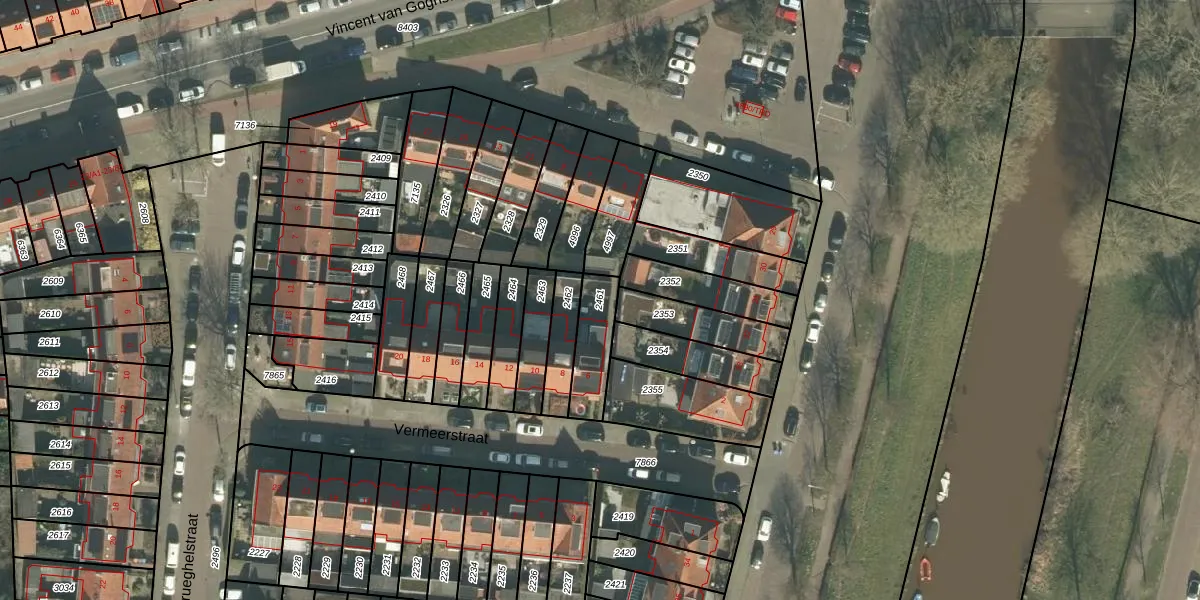 Gebruik de zoekbalk of klik op een perceel om informatie over het perceel te bekijken.