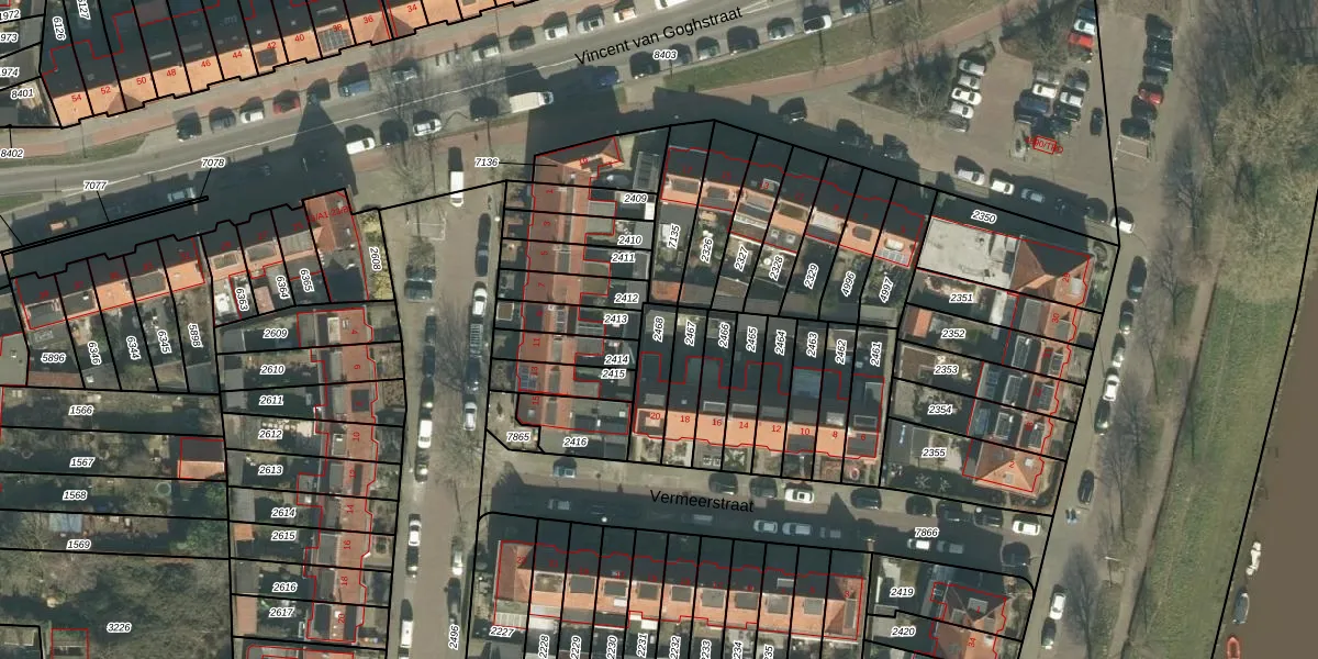 Gebruik de zoekbalk of klik op een perceel om informatie over het perceel te bekijken.